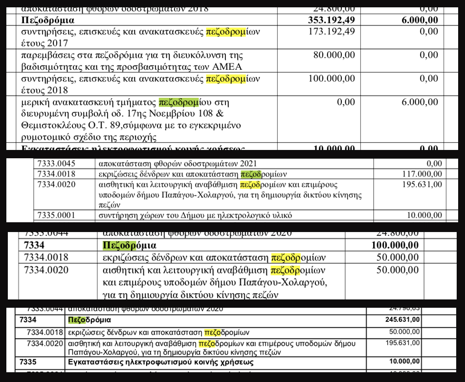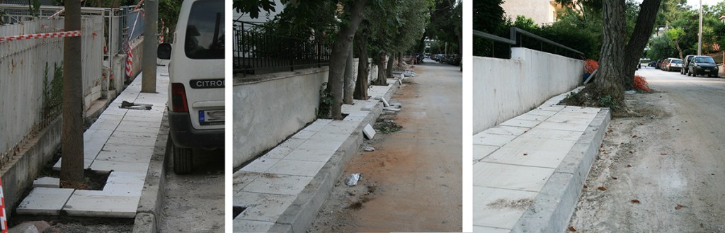 Η σημερινή δημοτική αρχή σπαταλάει χρήματα για μικροεξυπηρετήσεις και αλλάζει πλάκες χωρίς να δημιουργεί διαδρομές πεζών. Σύμφωνα με τον κτηριοδομικό κανονισμό για την συντήρηση και επισκευή των πεζοδρομίων υπεύθυνος είναι ο παρόδιος ιδιοκτήτης. Εκτός και αν μένει στο Δήμο Παπάγου Χολαργού και είναι φίλος μέλους της δημοτικής αρχής Αποστολόπουλου. Τότε ο δήμαρχος ονoμάζει την επισκευή του πεζοδρομίου ανάπλαση, και χρεώνει την δαπάνη στους υπόλοιπους δημότες. Θυμίζουμε ότι το 50% του φόρου εισοδήματος των φυσικών προσώπων πάει στον δήμο από όπου η δημοτική αρχή πληρώνει τα πεζοδρόμια των φίλων της. Υπάρχουν βέβαια και οι τυχεροί που μένουν δίπλα σε φίλους του Δημάρχου οπότε αναγκαστικά ευνοούνται κι αυτοί.