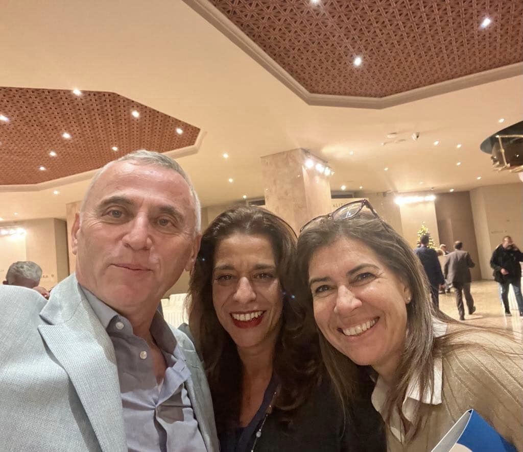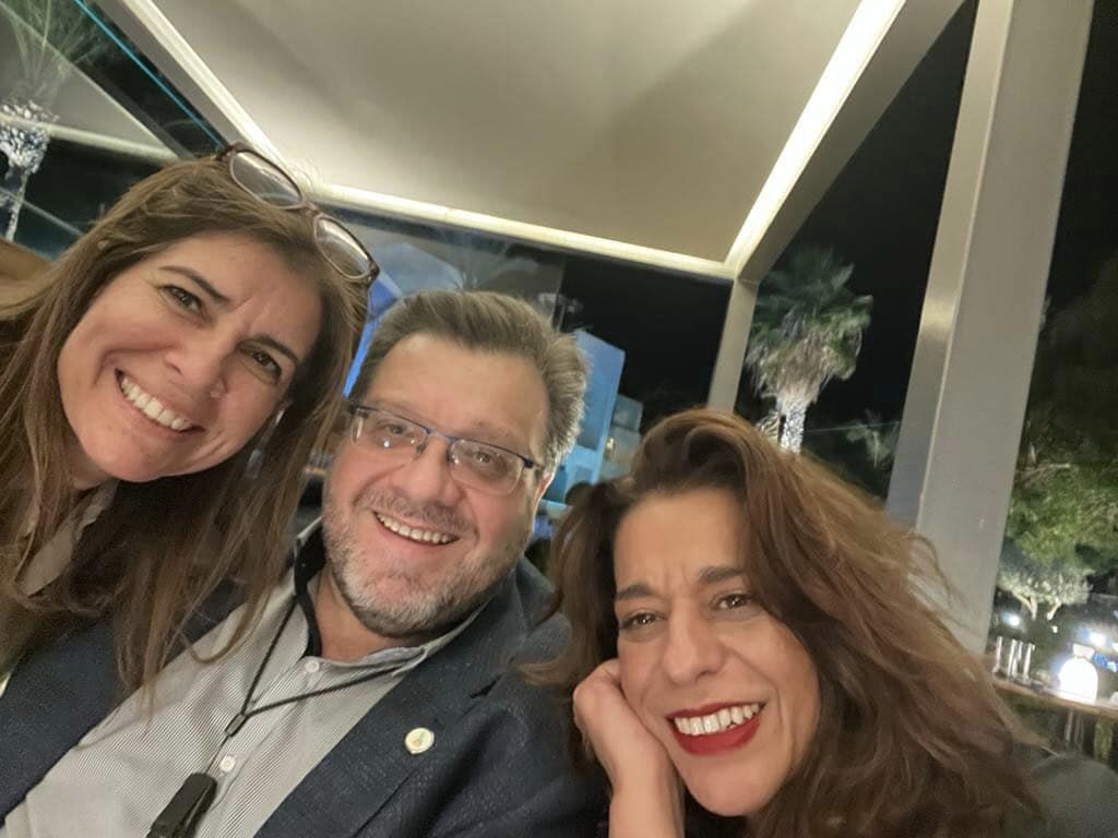 Στις φωτογραφίες οι κυρίες Σιώτου και Χαμηλοθώρη με δύο από τους «αρχαιότερους» δημοσιογράφους του ρεπορτάζ της τοπικής αυτοδιοίκησης Βασίλη Καραβάκο, Κώστα Καλογράνη.